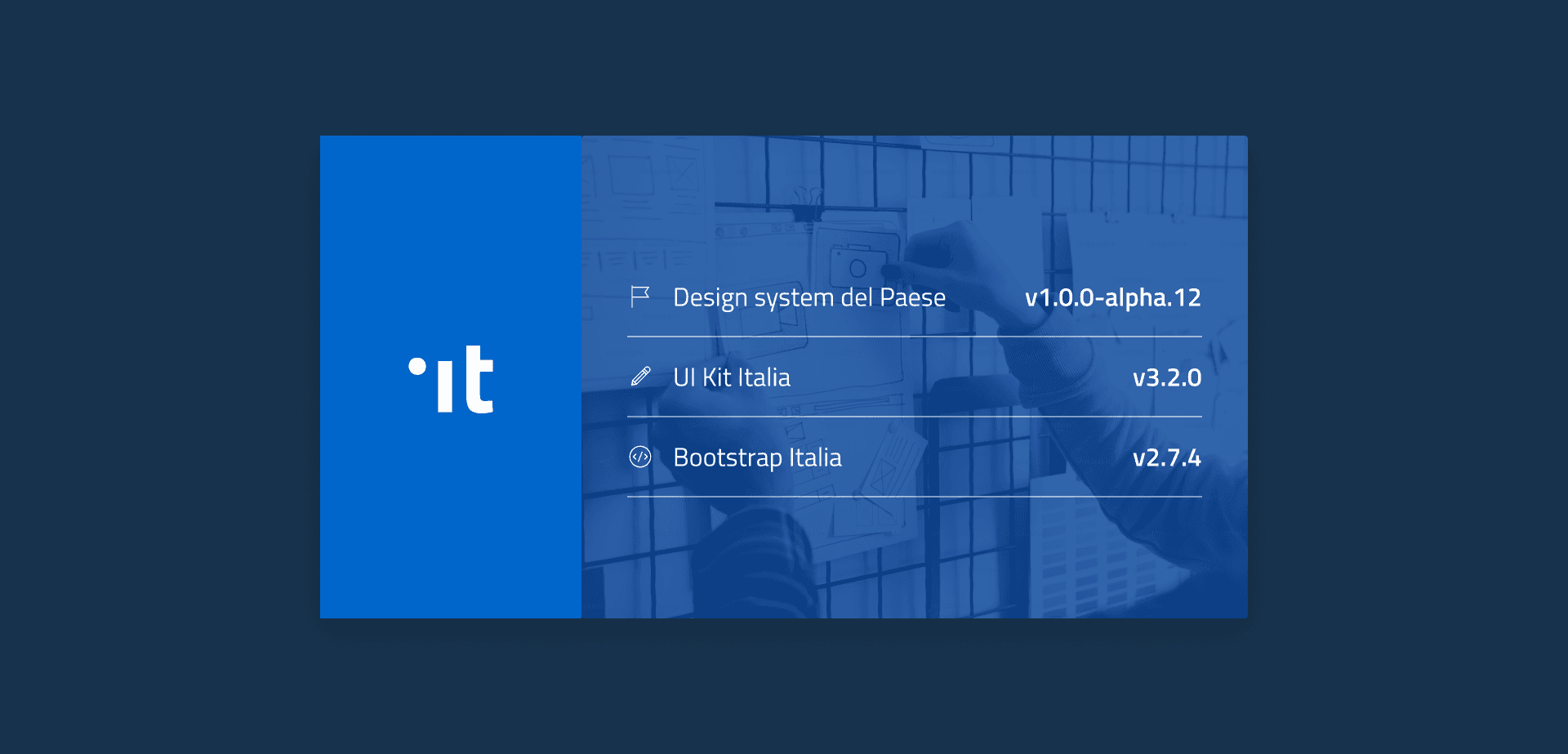 Sono appena stati rilasciati molti aggiornamenti per la documentazione del design system del Paese v1.0.0-alpha.12 (changelog), UI Kit Italia v3.2.0 (changelog) e Bootstrap Italia v2.7.4 (changelog).